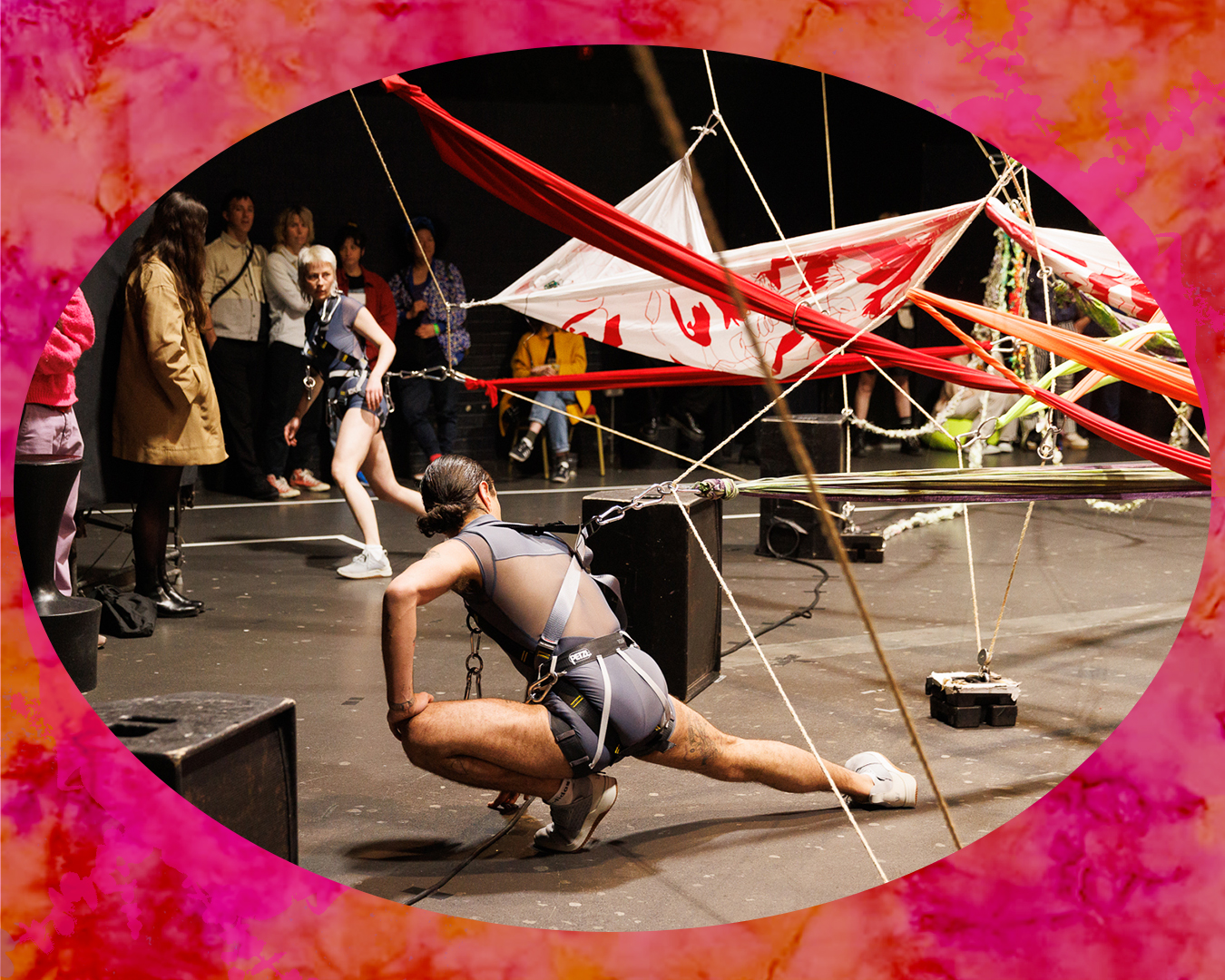 Methodically taking down their web, the performers’ choreography makes visible the consistent labor of caring for bodies in flux, their connections, and crumbling infrastructures. In this process, an* and moa submit to their materials and symbiotic collaboration outside the existing categories of meaning, form and identity.